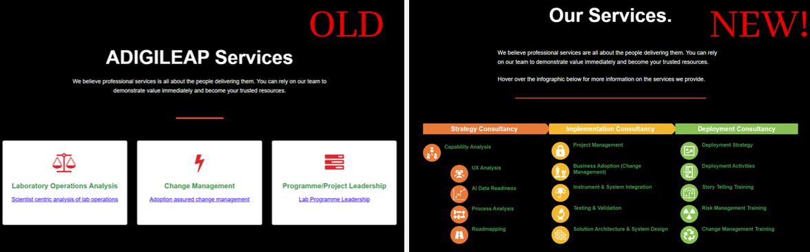 Our old page was a bit light on graphics and wasn't super informative on what services we actually offer, but that has now changed!